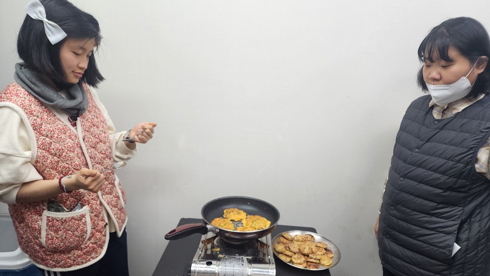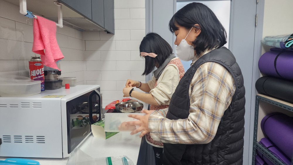 미성씨는 동그랑땡 전을 굽고싶다고 해서 탕비실에서 동그랑땡을 사왔습니다.