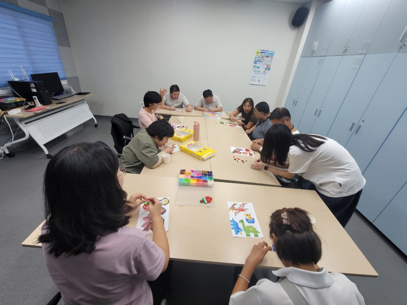 25년9월27일 자조모임-공예 최고관리자 0 50 09.30 11:04 오늘은 공예활동으로는 컬러스토리 디폼블럭으로 색깔을 맟추어서 다양한 것을 자유롭게 만들었습니다.만든 후 따뜻한 차종류를 시켜서 먹은 뒤 자조모임 활동을 마무리 하였습니다.
