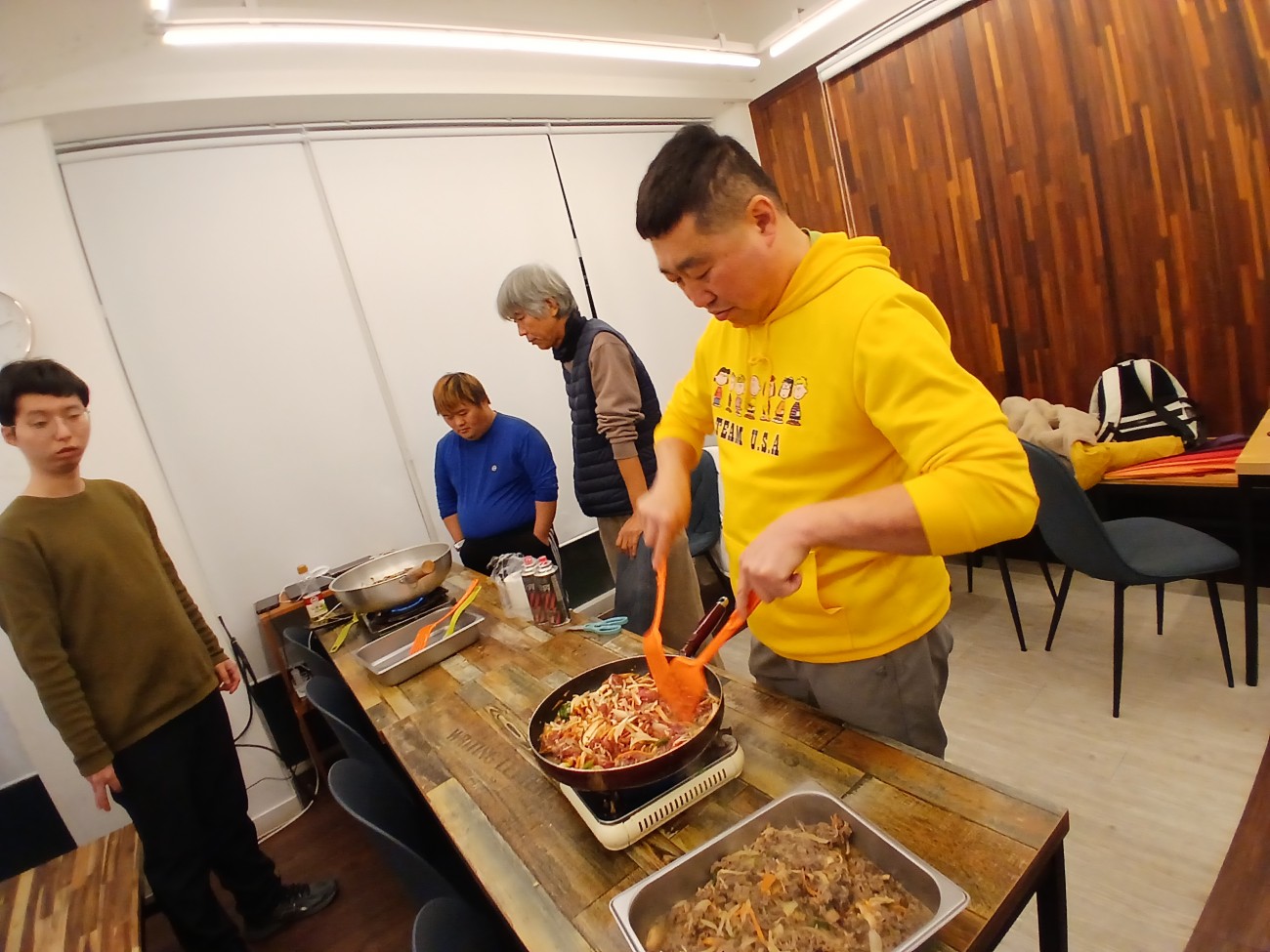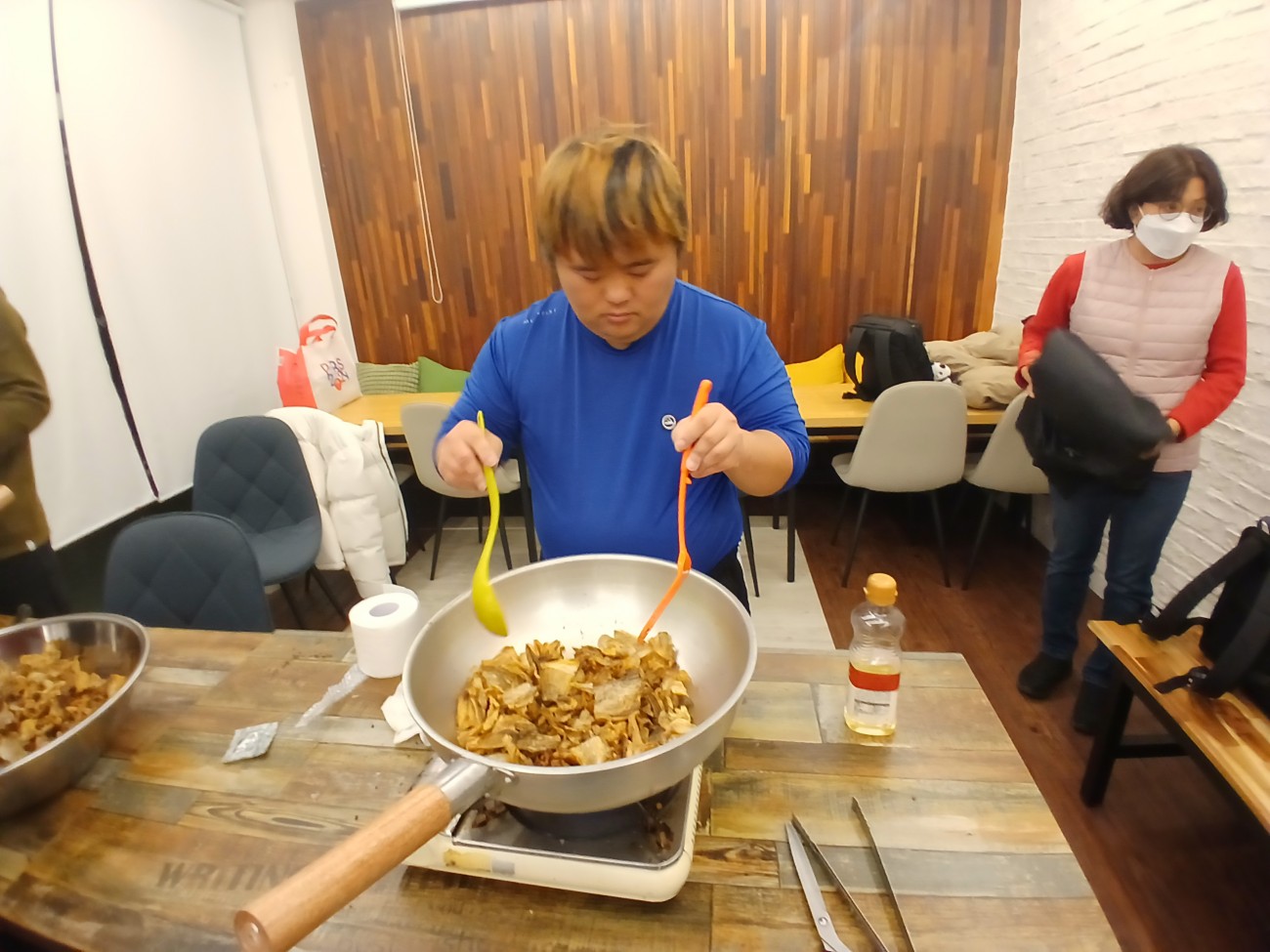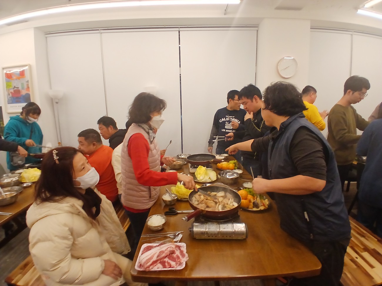 일을 마치고 온 당사자도 있었고, 집에서 온 당사자도 있었고, 지원자도 공유주방에 왔습니다.