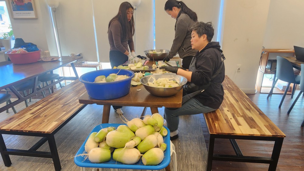 그 전날에 공유주방에서 김장준비를 했습니다.