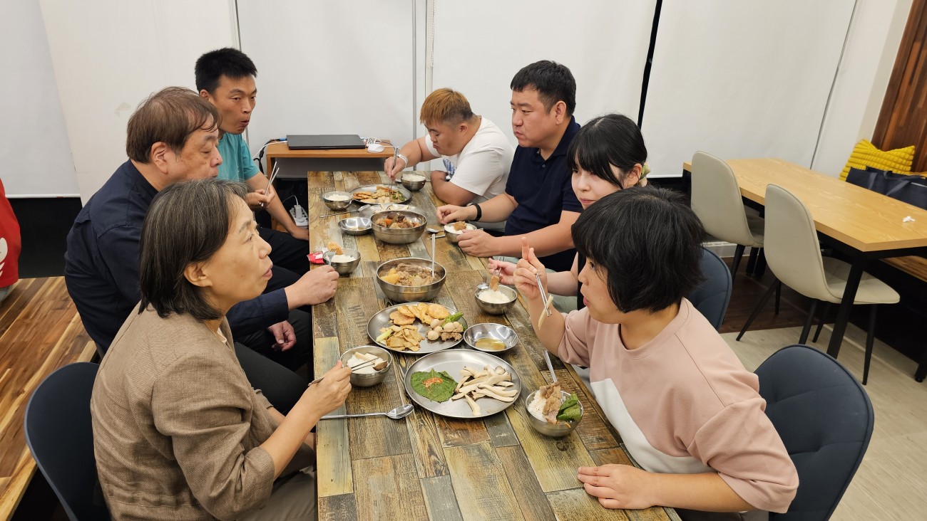 일본사람이랑 통역사람이랑 같이 음식을 같이 만들었습니다.