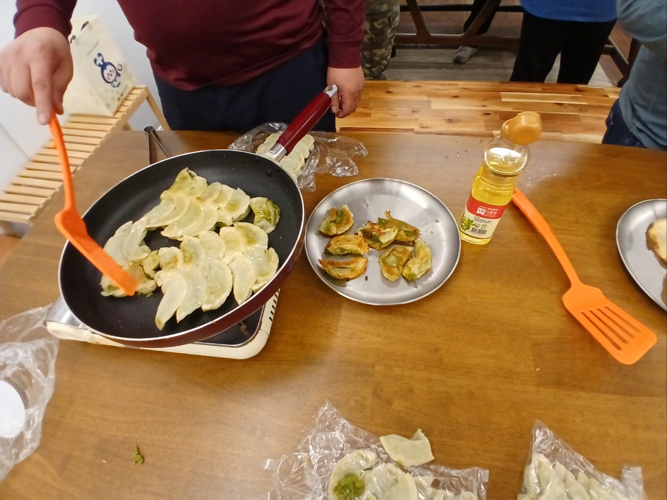카페 손수에서 당사자들이 후라이팬이랑 식용유를 들고 와서 햄도 굽고, 직접 김밥재료에 들어갈 재료를 햄이랑 직접 납작만두이랑 만두를  직접 굽기도 하였습니다.