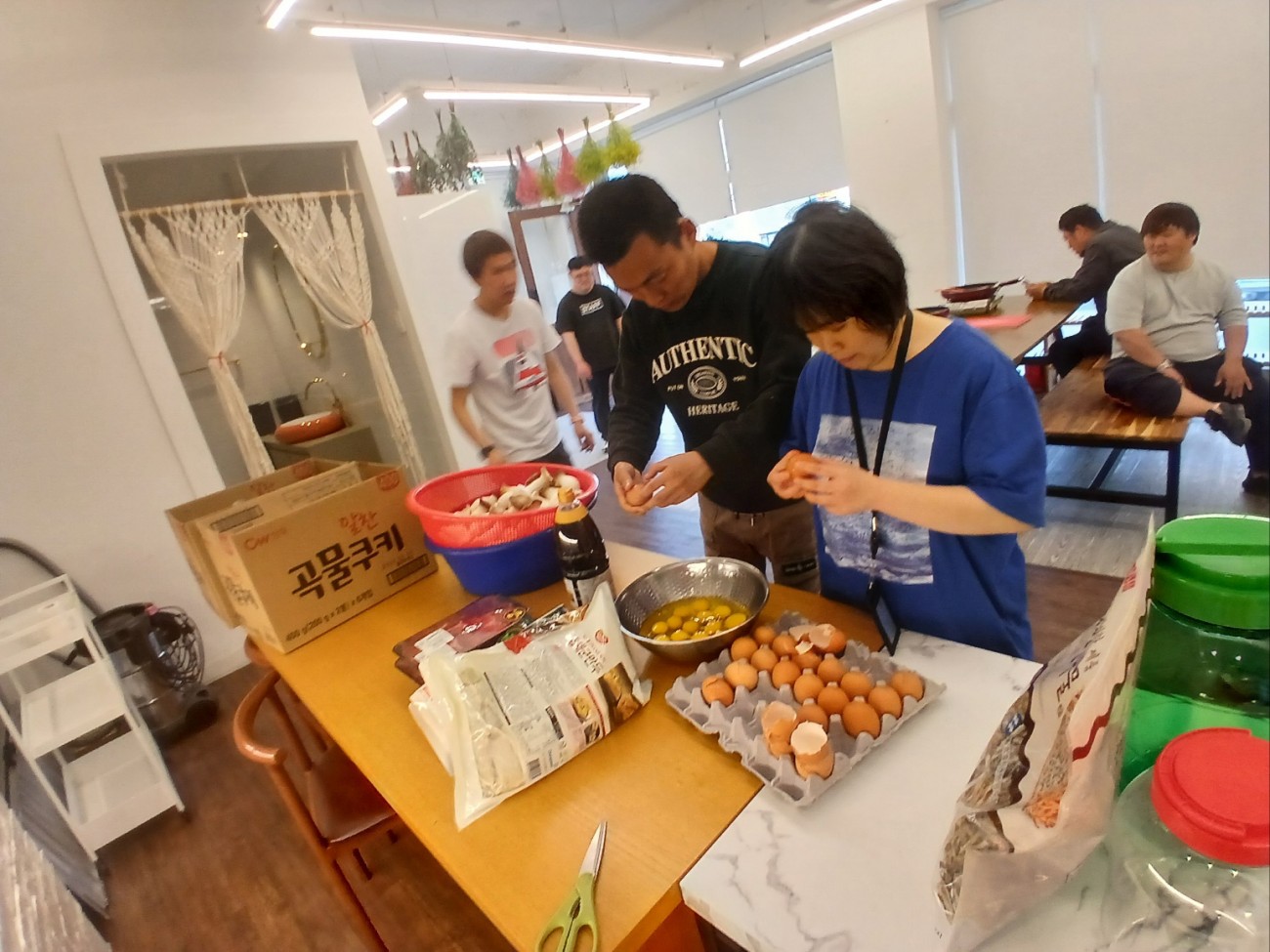 일을 마치고 온 당사자랑 지원자도 카페 손수에 와서 직접 재료 손질을 하였습니다.