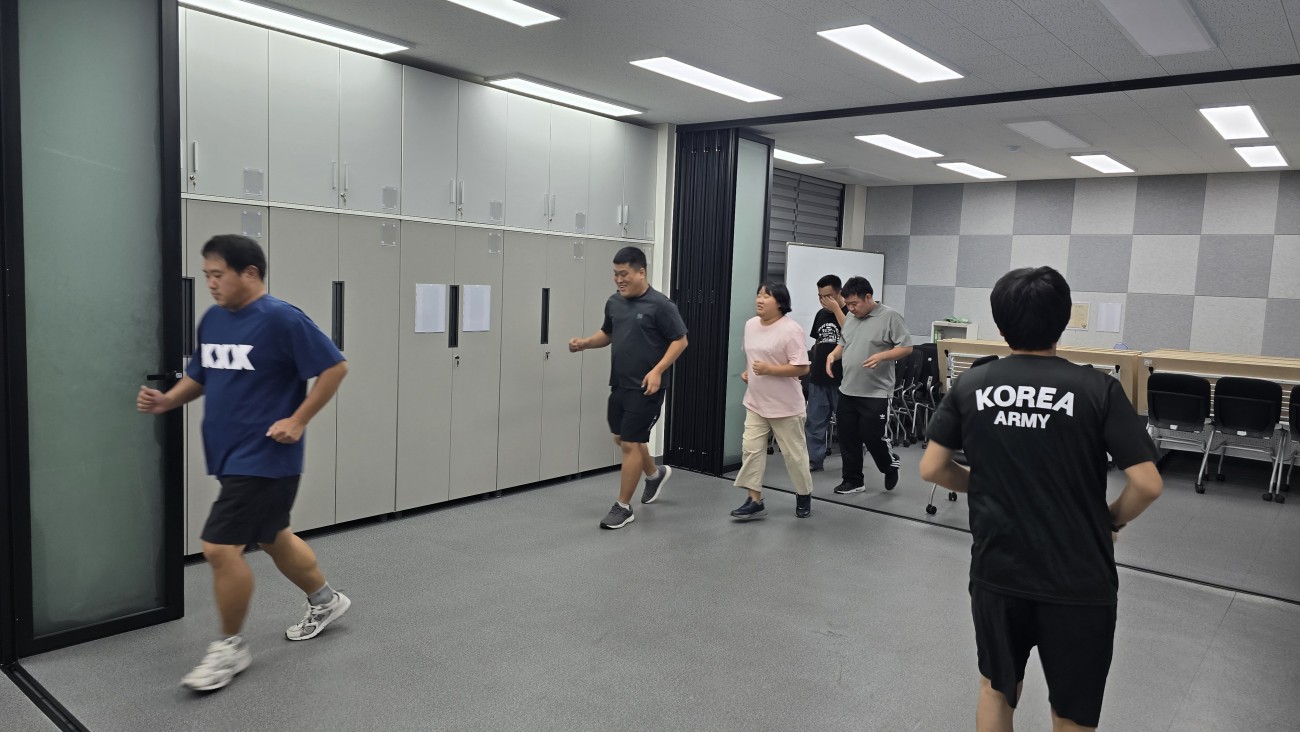 요가매트를 치우고 나서 이쪽에서 저쪽으로 달리기를 하면서 뛰기도 하였습니다.