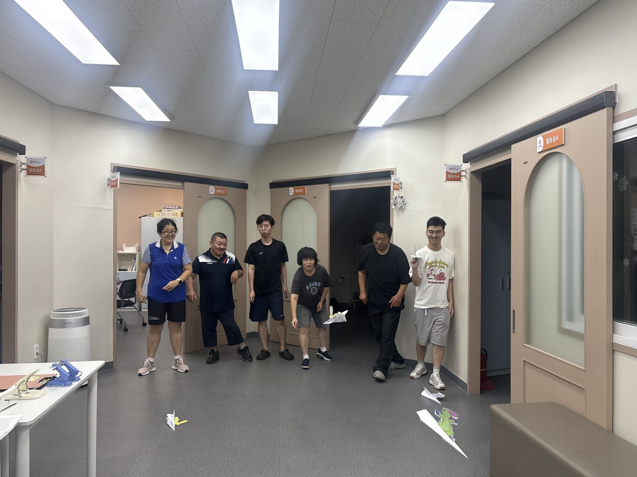 다 접고나서 복도에 나와서 어떻게 날리지 이야기를 해주었습니다.