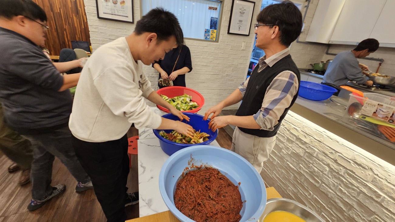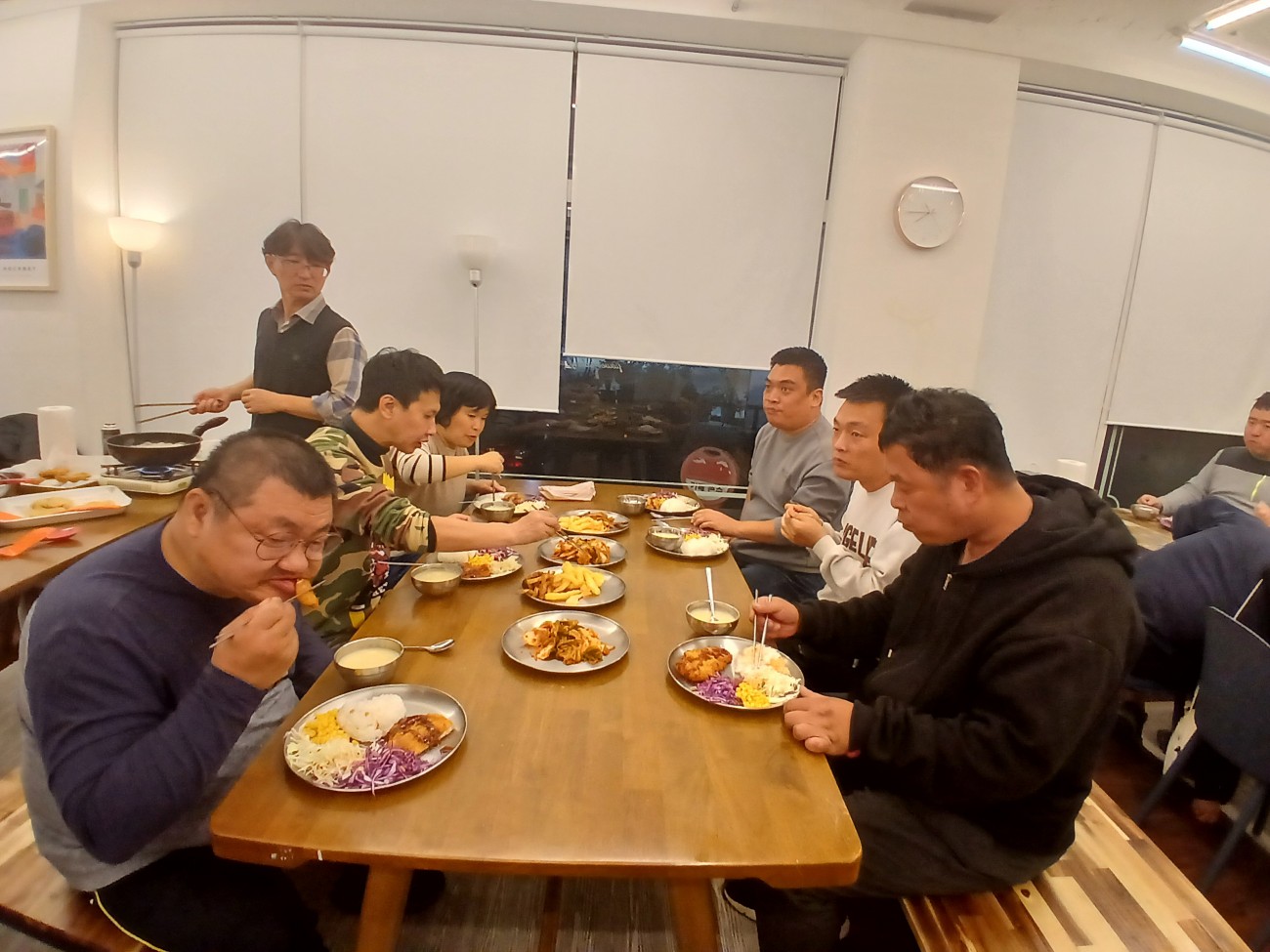 일을 마치고 온당사자도 있었고, 집에서 온 당사자도 있었고, 지원자도 공유주방에 왔습니다.