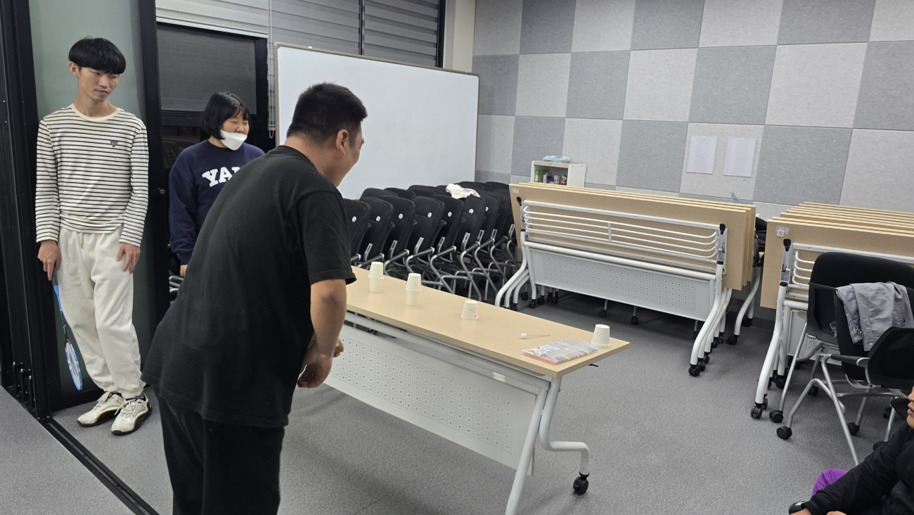 릴레이로 각 팀마다 나와서 제기차기도 하고 나서 그다음에 화살을 쏘고나서 종이컵 쓰려놓고 그다음에 배드민턴을 하고 나서 원반던지기를 했습니다.