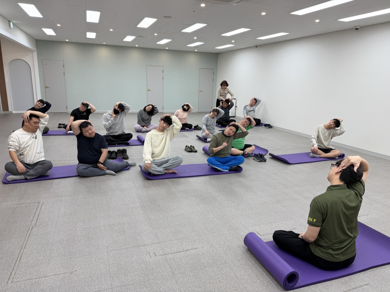 각자 요가매트를 펼친것을 정리를 하였습니다.