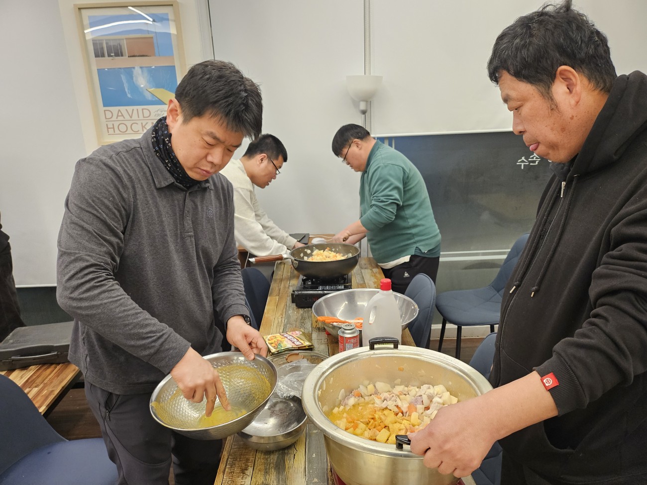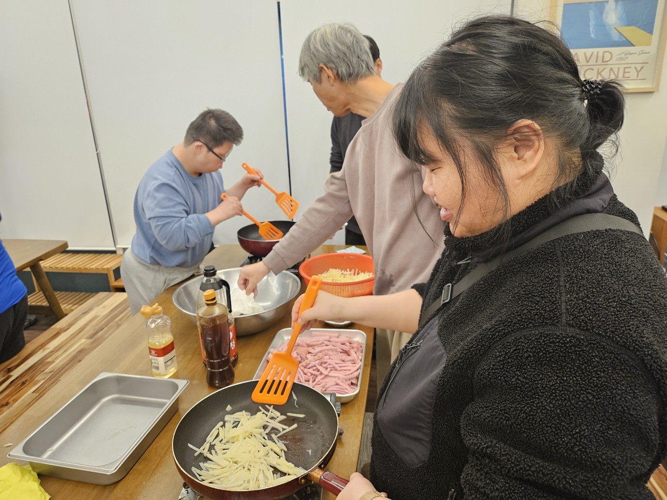 2026년 2월 24일 마을의 맛 한끼식사하기!! 최고관리자 0 93 02.25 09:29 2026년 2월 24일 마을의 맛 한끼식사하기일을 마치고 온 당사자도 있으며 활동보조선생님과 같이 온 당사자가 왔습니다.각 조마다 휴대용 버너로 카레 부추오이 햄감자 제육 재료들을 다뜸어서 열심히 볶았고카레랑 부추오이무침과 햄감자볶음 제육볶음을 만들었습니다.그렇게 만들었던 부추오이무침과 햄감자볶음 제육볶음을 밥이랑 들어서 먹었고먹은뒤 설거지를 하였으며 청소로 마무리로 했습니다.당사자들이 가지고 온 반찬통 마다 부추오이무침이랑 햄감자볶음 제육볶음 카레를 들어서 가지고 갔습니다.