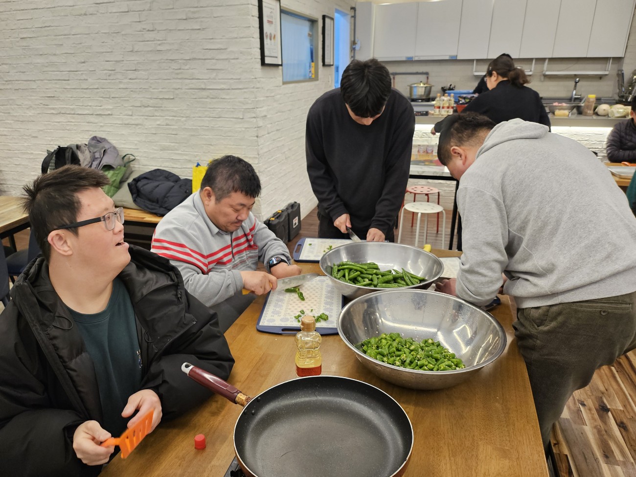 26년 3월 10일 한끼식사하기 최고관리자 0 29 03.11 12:30 2026년 3월 10일 한끼식사하기일을 마치고 온 당사자도 있으며 활동보조선생님이랑 같이 온 당사자도 있었습니다.3~4조는 김밥 재료를 볶아서 단무지랑 김밥을 만들었습니다.1조는 소고기를 구웠고 만두도 구웠습니다.3조는 야채를 버물려서 접시를 올렸습니다.4조는 된장과 오이를 고추랑 같이 버무려서 고추무침을 만들었습니다.밥이랑 같이 먹었습니다.청소를 하였습니다.