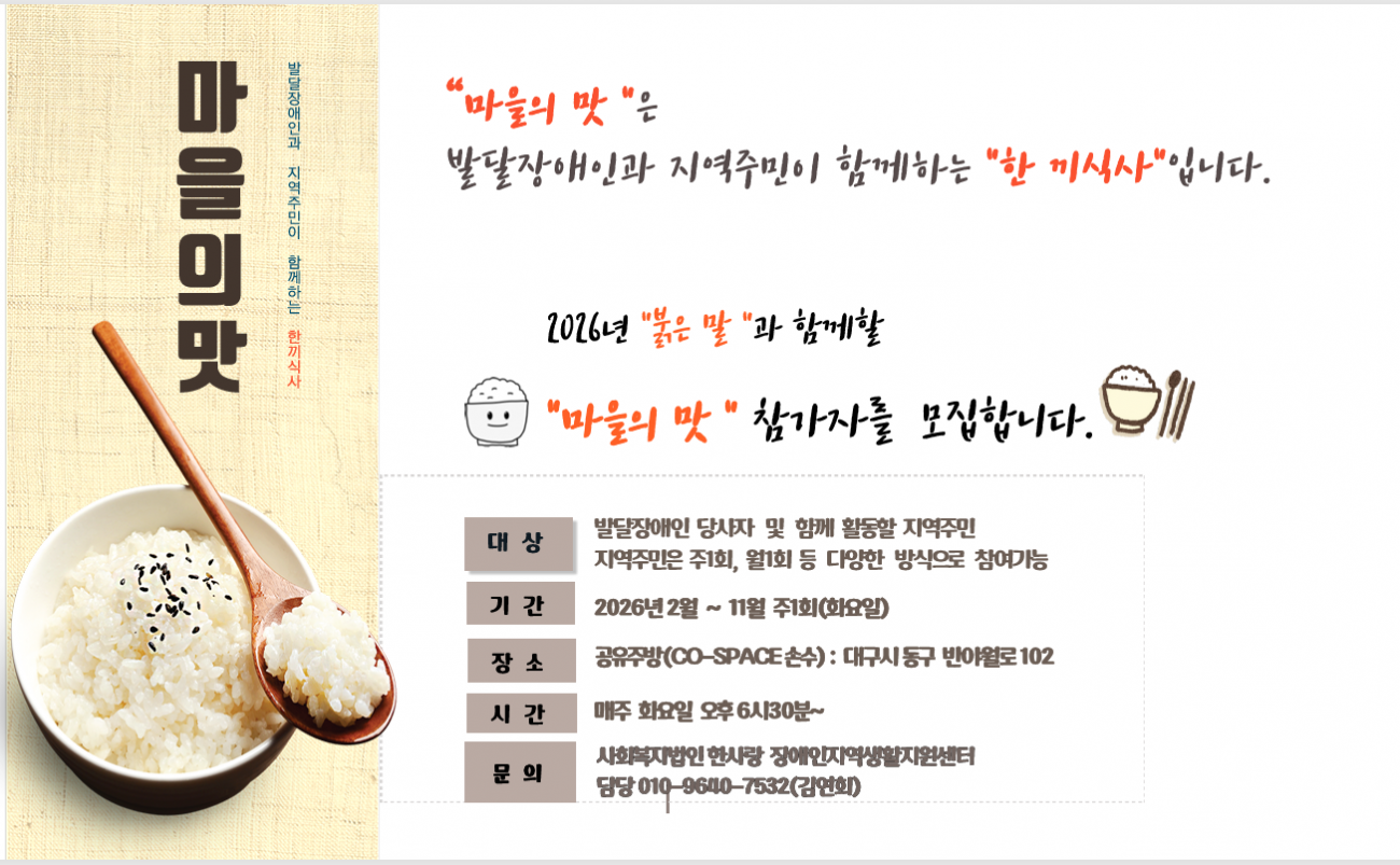 발달장애인과 지역주민이 함께하는 "한끼식사" 참가자모집 공지