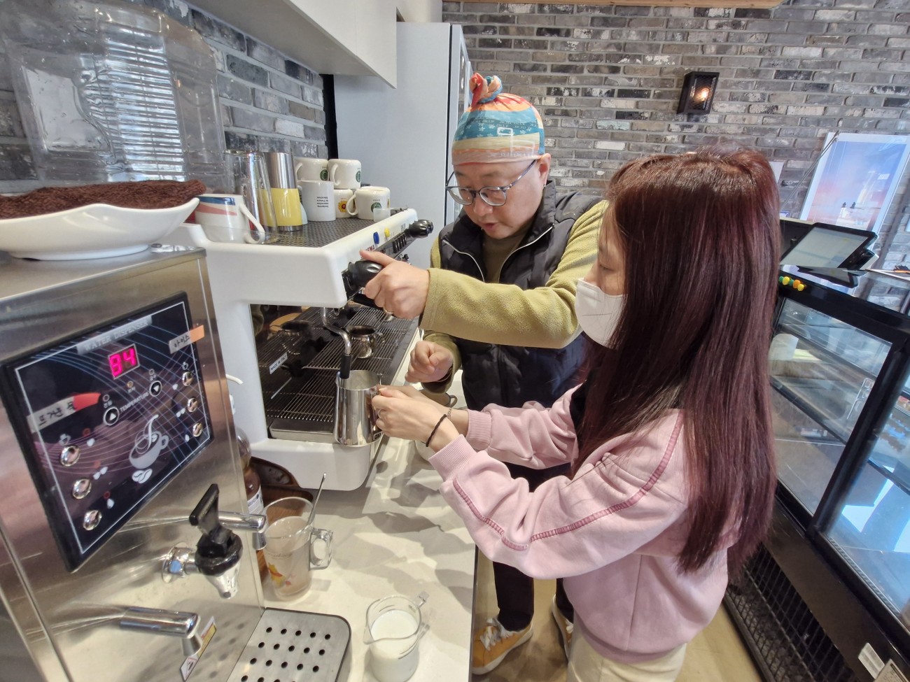 25년 11월 13일 박미선 단기체험 직업체험 바리스타 최고관리자 0 817 2025.11.13 17:49 2025년 11월 13일 박미선 단기체험 직업체험 바리스타미선씨는 활동보조선생님이랑 같이 카페사람이야기 혁신점에 만나서 커피를 마셨습니다.미선씨는 커피내린것을 써빙을 했습니다.미선씨는 카페사람이야기 혁신점에 가서 조윤식국장님이랑 같이 커피를 같이 내렸습니다.미선씨는 조윤식국장님이랑 커피를 내린것을 컵에다가 담고 나서 그다음에 커피주전자에 우유를 넣고 스팀을 쳤습니다.미선씨는 우유스팀친것을 커피내린것에 우유에 부었습니다.미선씨는 조윤식국장님이랑같이 커피머신에 원두를 갈고나서 시몬가루를 직접 뿌렸습니다.