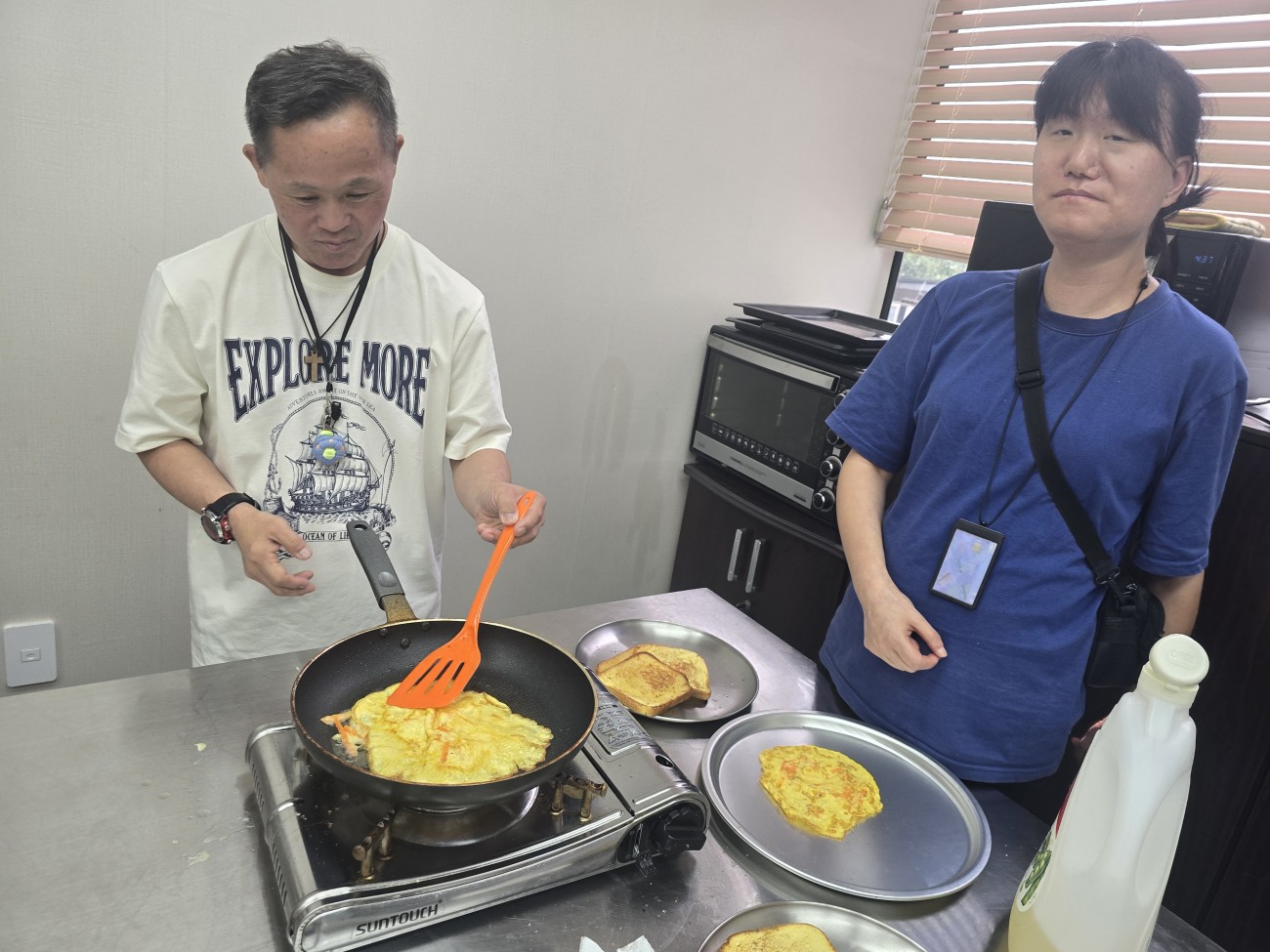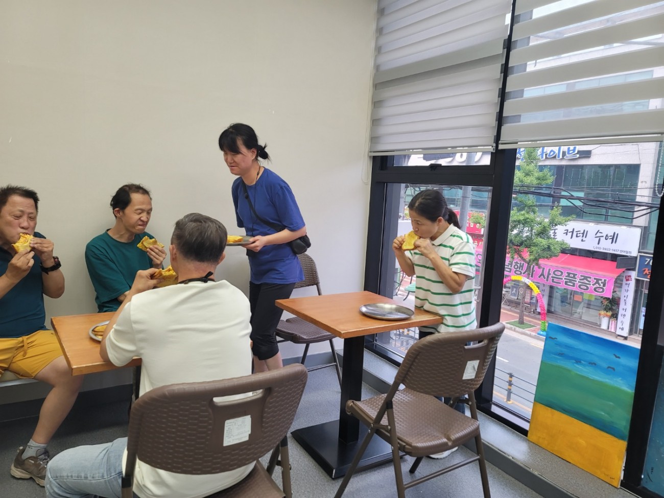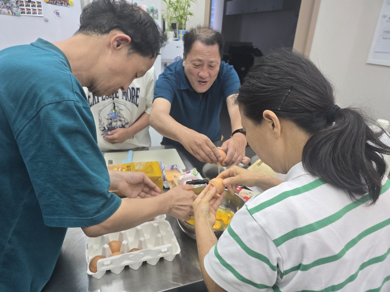25년 6월28일 자조모임-제빵2 최고관리자 0 441 07.02 14:29 25년 6월28일 오후1시오늘 회의를 시작하고 끝나고 동료들하고 같이 마트에 가서 재료를 사고계란,양배추,햄,치즈,당근,식빵,버터를 사고 키위소스가 없어서 못 샀습니다.후라이팬에 버터를 넣고 녹여서 식빵을 굽고 다하고 나서 계란넣고기름넣고 익혀서 뒤집고, 다 굽고 나서 식빵에 계란을 올리고 햄도 올리고치즈도 올리고 케첩,머스타트 소스를 뿌리고 식빵을 올려서 먹었습니다.7월달에는 식빵 핫도그를 만들예정입니다.
