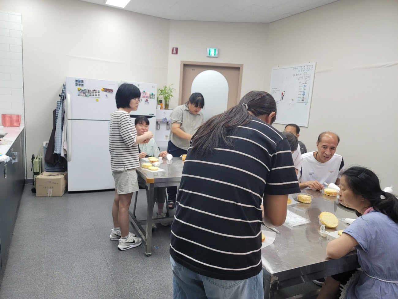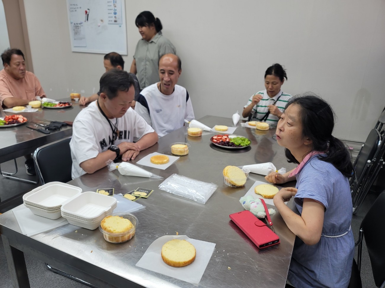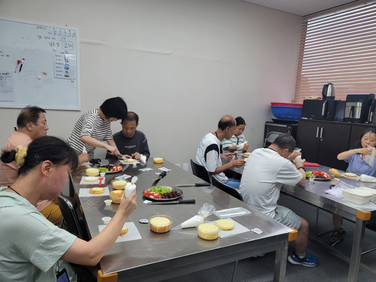 25년 7월 26일 자조모임- 제빵2 최고관리자 0 417 07.26 17:24 25년 7월 26일 자조모임- 제빵2 오후1시오늘은 케이크를 만들었습니다.빵을 3등분을 자르고 준비 먼저 하고 붓으로 시럽을 바르고 생크림을 바르고 과일넣고 딸기 포도 체리 넣고 동료들은 빵을 한 개씩 나눠서 각자 넣고 싶은 과일넣고 케이크를 만들었어요.카페 메뉴를 보고 선택해서 각자 먹고 싶은 커피를 시켜먹었어요.커피주문 할때에 하나가 빠져서 확인을 못했어요.