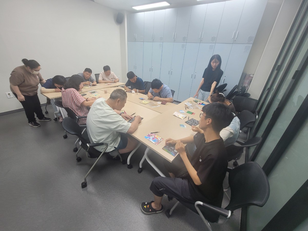 25년 7월 26일 자조모임-공예 최고관리자 0 387 07.26 17:44 25년 7월 26일 공예 자조모임 오후1시오늘은 공예활동으로 색종이붙이기와 이쑤시개로 물고기, 문어등을 긁어서 색깔이 다양하게 나오는 것을 했습니다.재미있었습니다.마무리될땡쯤 커포즈커피에 메뉴를 보여주고, 주문을 받아서 차 한잔을 맛있게 먹고, 자조모임 활동을 끝냈습니다.