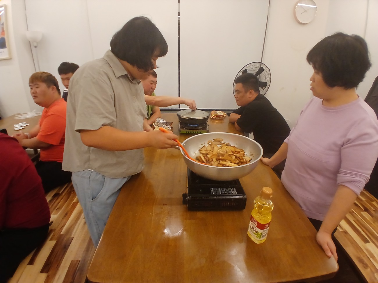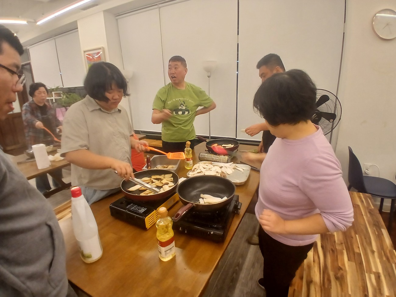 일을 마치고 온 당사자도 있었고, 집에서 온 당사자도 있었고, 지원자도 공유주방에 왔습니다.