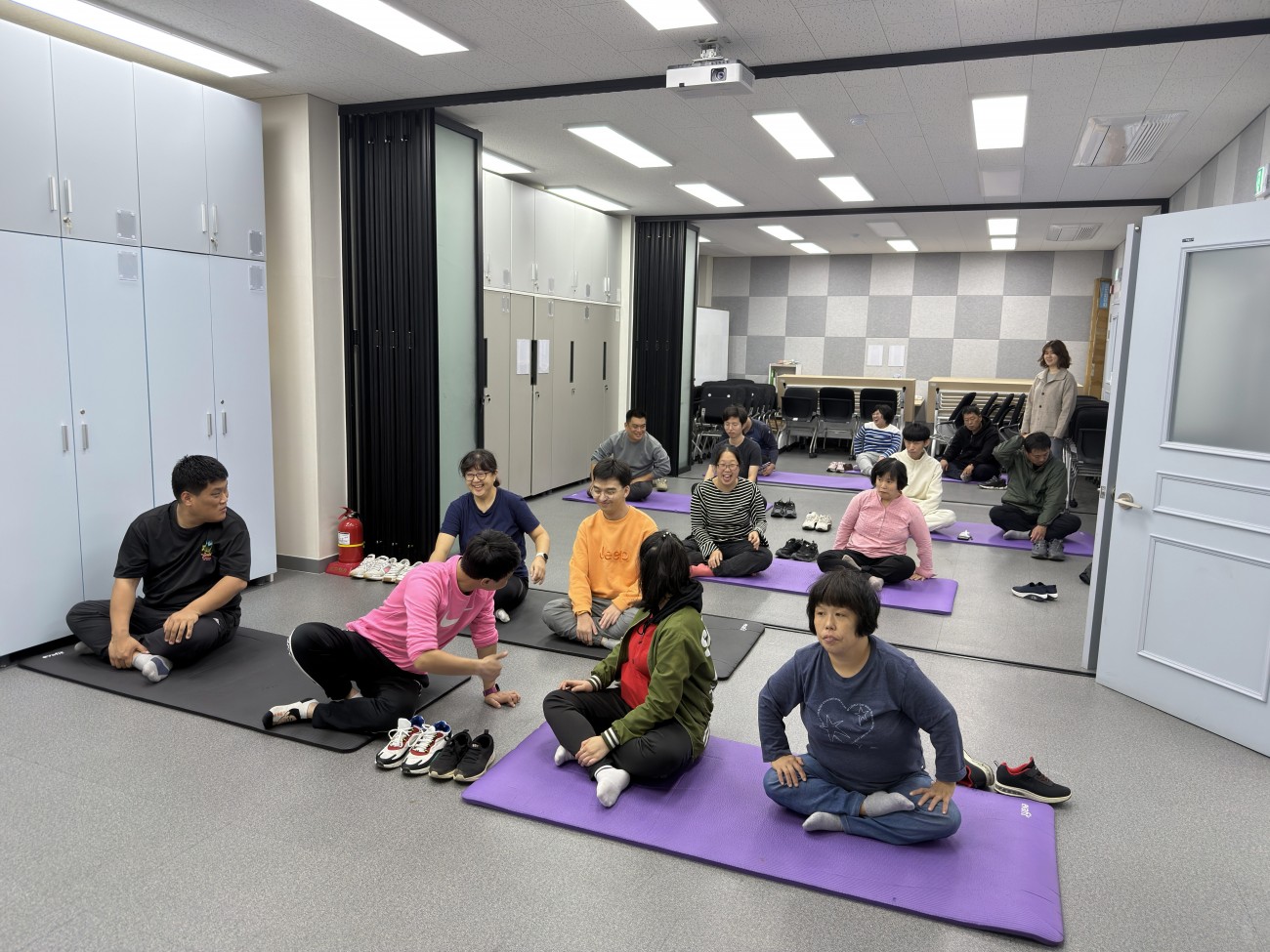 2025년10월23일 필라테스 몸튼튼 마음튼튼 최고관리자 0 468 2025.10.24 18:00 2025년10월23일 필라테스 몸튼튼 마음튼튼일을 마치고 온 당사자도 있었고, 집에서 온 당사자도 있었습니다.각자 저녁을 먹고 센터에 모였습니다.단체로 필라테스 몸튼튼 마음튼튼을 하였습니다.요가매트에 앉아서 스트레칭을 하였습니다.요가매트에 앉아서 스트레칭을 하면서 목도 풀기도 하고, 뒤로 손을 짚어서 엉덩이를 들었습니다.요가매트에 앉아서 다리를 접었다가 다시 일어났다가 무릎으로 다시 앉았습니다.다시 일어나서 요가매트를 접고 윷게임을 하였습니다.윷게임도 하고, 원반으로 윷을 던졌습니다.