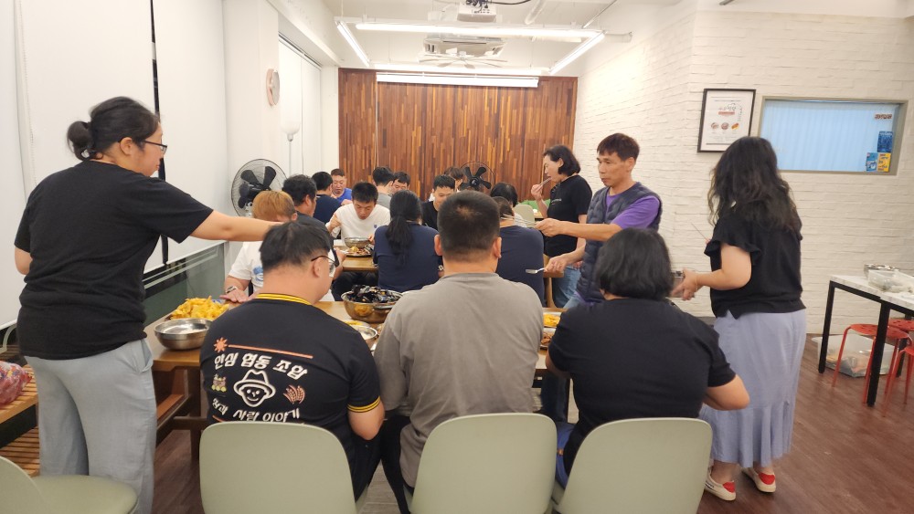 일을 마치고 온 당사자도 있었고, 집에서 온 당사자랑 지원자도 공유주방에 왔습니다.