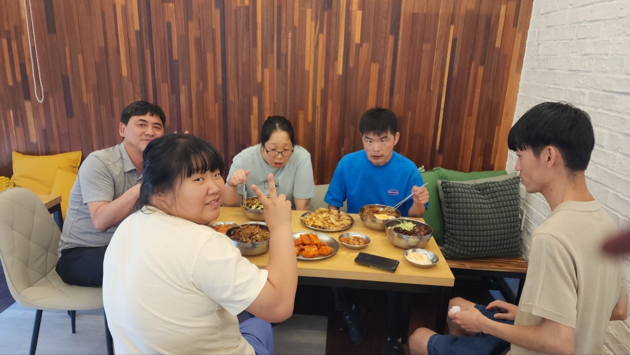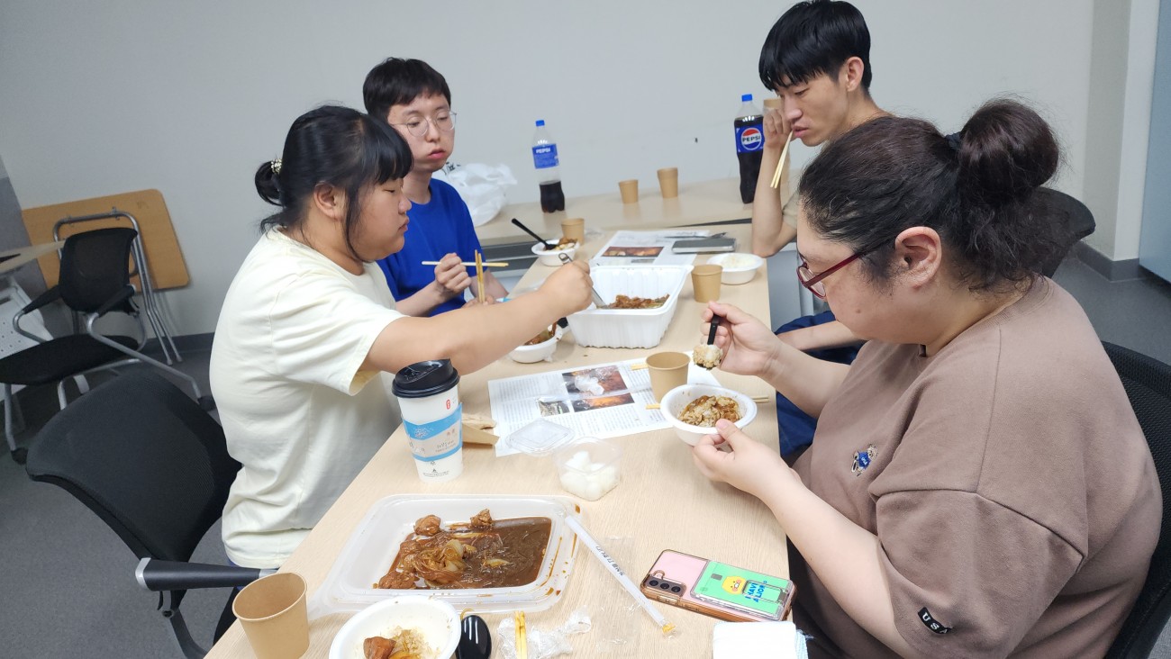 김치도 접시에 담아서 다같이 먹었습니다.