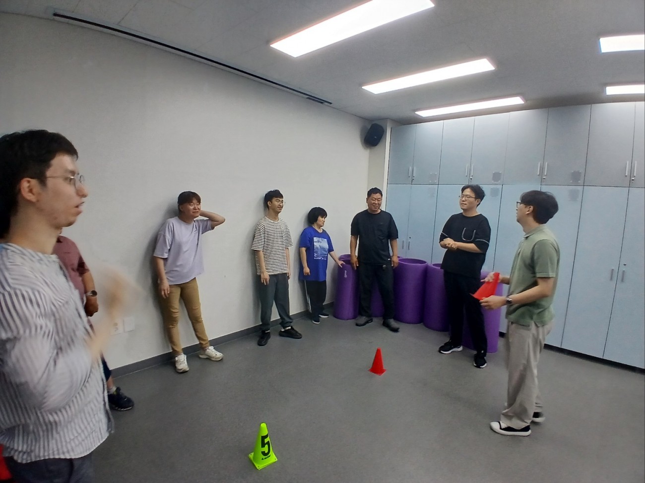 요가매트를 치우고나서 깔대기를 머리에 씌우고나서 한바퀴를 돌았습니다.