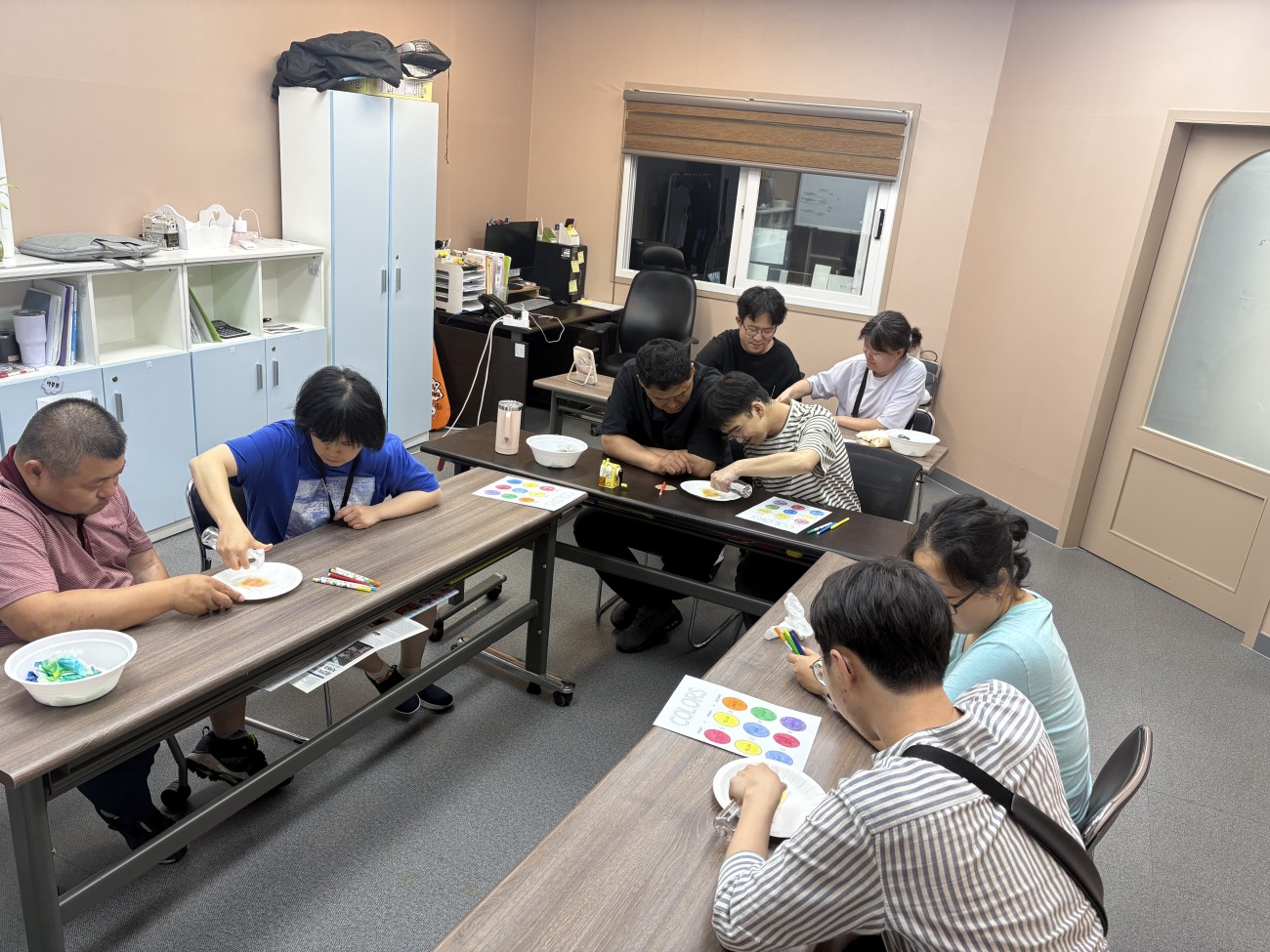 집에서 온 당사자도 있었고, 집에서 온 당사자도 있었고, 저녁을 먹고 센터에 모였습니다.