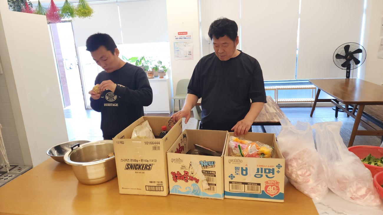 다른 곳에서는 휴게용 버너랑 웍이 있었는데에 볶음밥 재료가 담겨져 있었습니다.