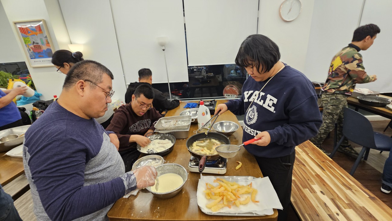 일을 마치고 온당사자도 있었고, 집에서 온 당사자도 있었고, 지원자도 공유주방에 왔습니다.