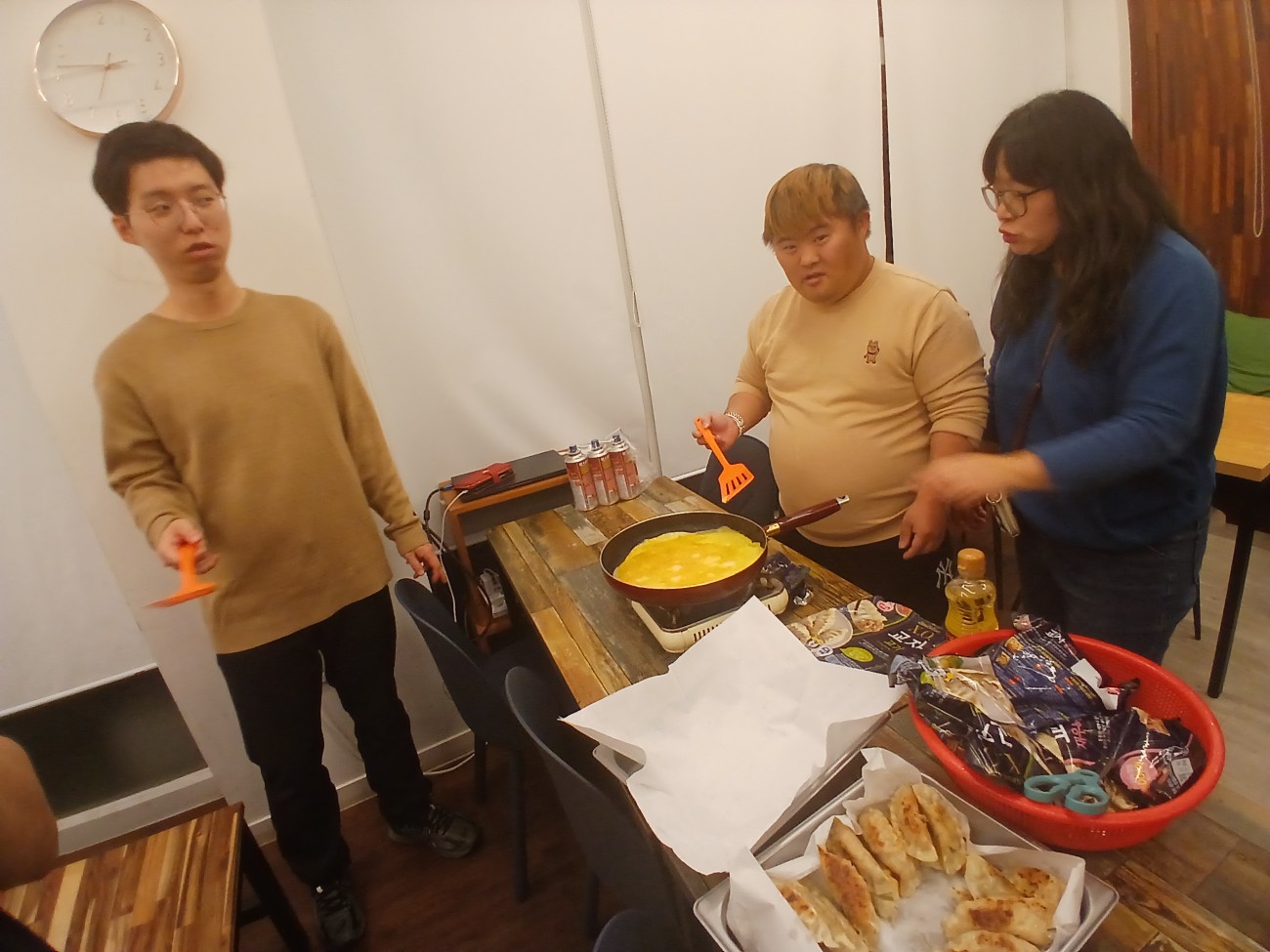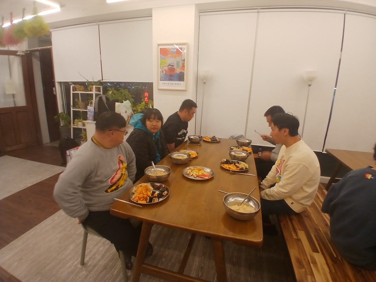일을 마치고 온 당사자도 있었고, 집에서 온 당사자도 있었고, 지원자도 공유주방에 왔습니다.