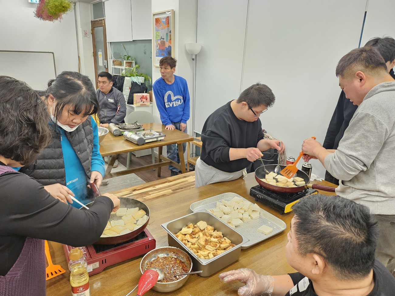 2026년 2월 3일 마을의 맛 한끼식사하기 최고관리자 0 180 02.04 09:37 2026년 2월 3일 마을의 맛 한끼식사하기일을 마치고 온 당사자도 있었고, 집에서 온 당사자랑 지원자도 공용주방에 왔습니다당사자들이 휴대용 버너과 휴대용 가스를 꺼내서 꽂아서 썼고 각 조를 짜가지고 각 조마다 깻잎무침과 깻잎전을 붙이고 다른 조는 야채 소시지를 볶았고 또 다른 조는 두부구이를 만들었고 잡채를 만들었습니다.밥을 먹은 뒤 마무리로 설거지랑 청소를 했습니다