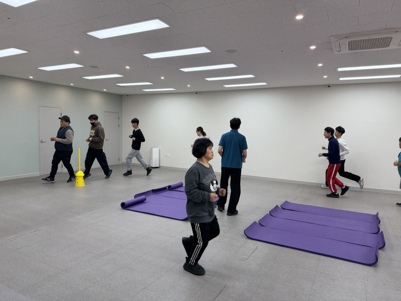 요가매트를 접어놓고나서 10바퀴 달리기를 하였습니다.
