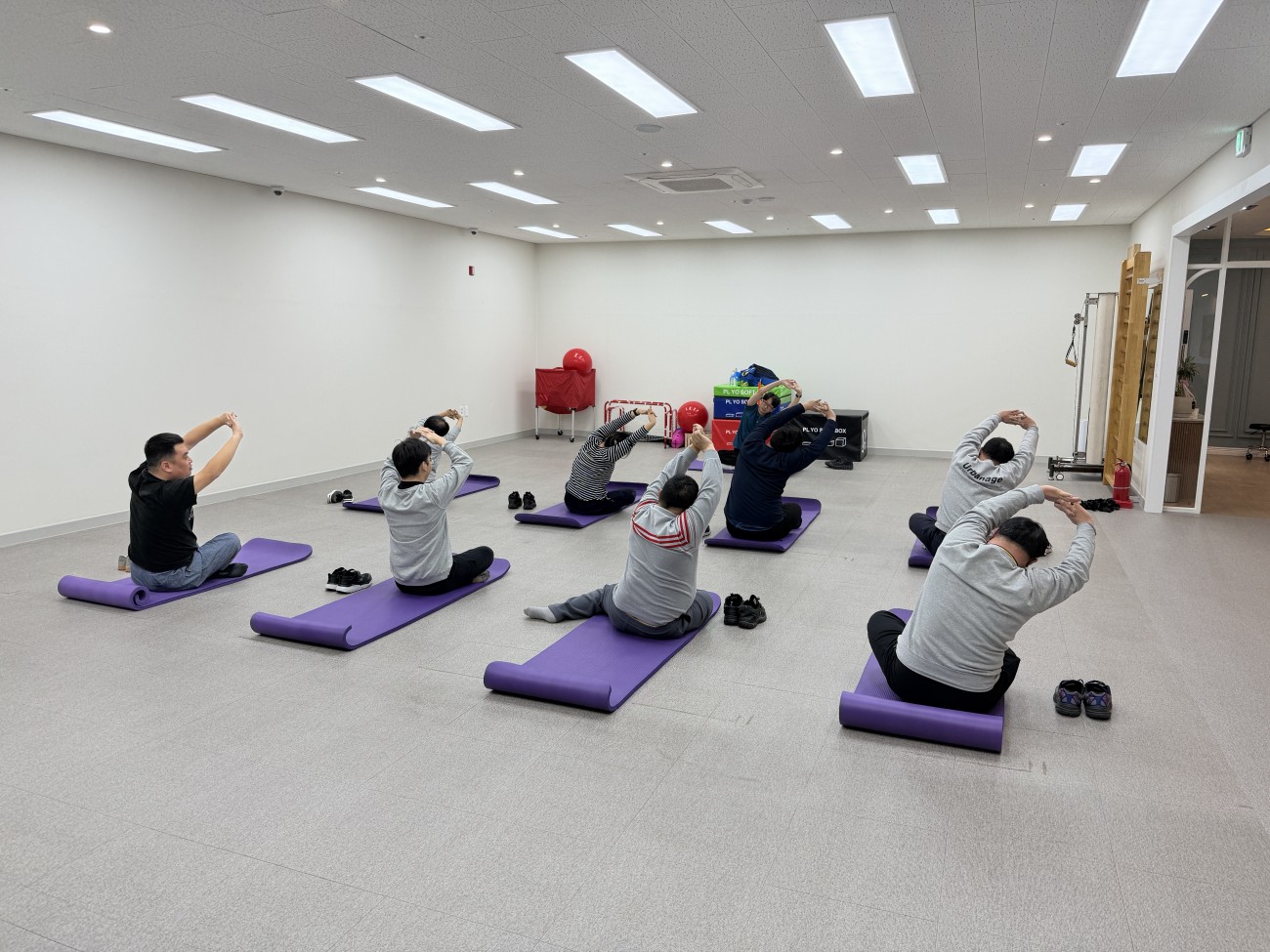 각자 요가매트를 펼친것을 정리를 하였습니다.
